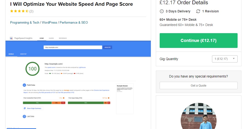 By the end of the gig, the seller had provided exactly what he had promised which was an improvement on our page speed score.