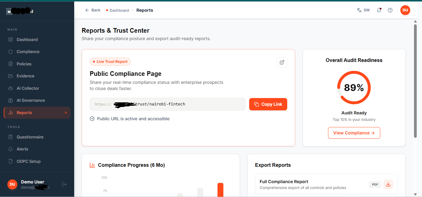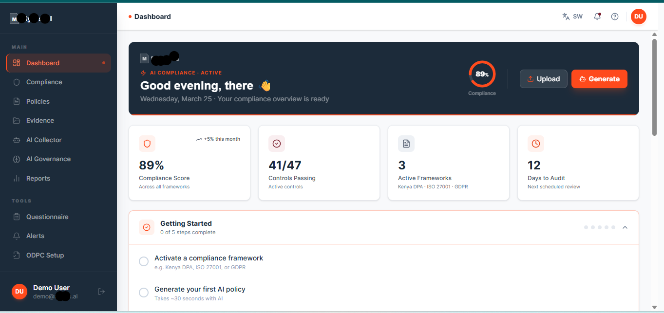 Migradia Ltd is a technology company based in Kenya focused on building enterprise software and AI-driven automation systems. Our first platform is a SaaS solution designed to help African businesses manage governance, risk, and regulatory compliance in a centralized and automated way. Many organizations still handle compliance processes manually across spreadsheets, emails, and fragmented systems. Migradia’s platform aims to streamline these processes by enabling organizations to track obligations, manage policies, monitor risk, and maintain audit readiness through a single digital environment. By combining automation, intelligent workflows, and scalable cloud infrastructure, we aim to reduce operational complexity for businesses & organizations.